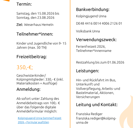 Die Planungen für das kommende Sommerferienprogramm laufen bereits. Interessierte haben die Möglichkeit, sich in den kostenlosten Newsletter einzutragen, um rechtzeitig über den Veröffentlichungsstart informiert zu werden. HIER geht´s zur Newsletter-Anmeldung.
