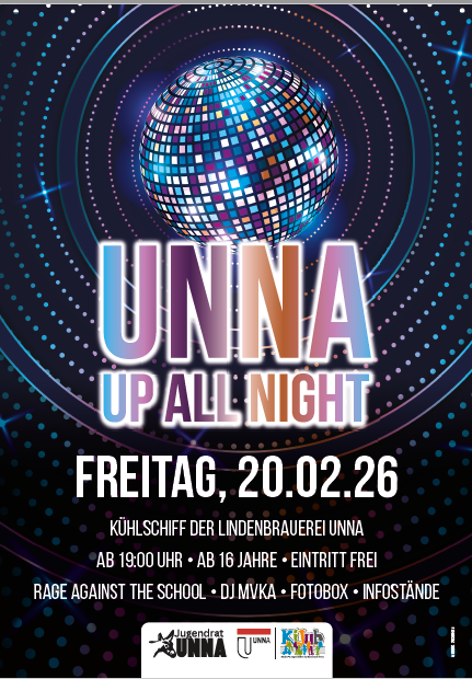 Der Jugendrat der Kreisstadt Unna organisiert im Kühlschiff der Lindenbrauerei eine kostenlose Jugenddisco mit vielfältigem Rahmenprogramm!