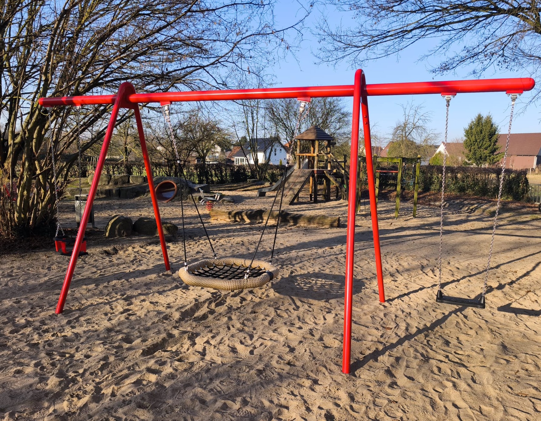 Auch der Fallschutz wurde erneuert: Statt Kies sorgt jetzt Sand für mehr Sicherheit beim Spielen. 🏖️