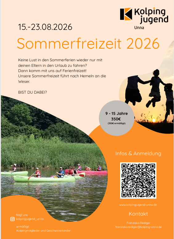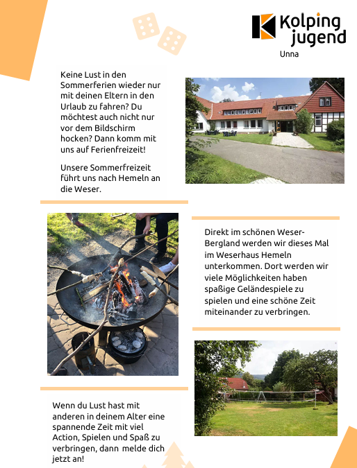 Achtung! Zuschüsse über das Kinderferienwerk der Stadt Unna möglich. Bei Fragen melden Sie sich einfach bei uns im Kinder- und Jugendbüro. Weitere Infos über den LINK .