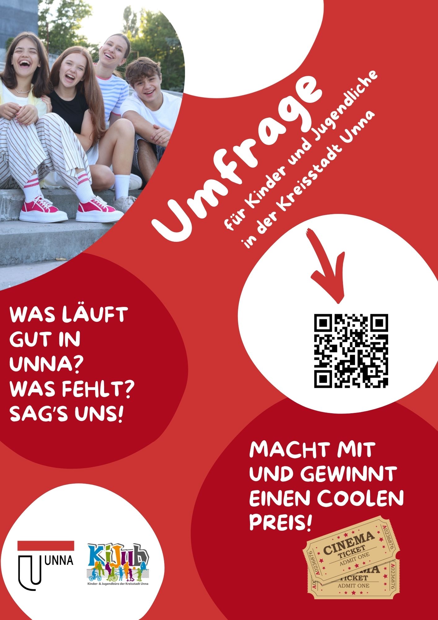 Die Kreisstadt Unna führt eine Umfrage zum neuen Kinder- und Jugendförderplan durch, mit dem Ziel, die Wünsche, Interessen und Bedarfe von Kindern und Jugendlichen in Unna zu erfassen.